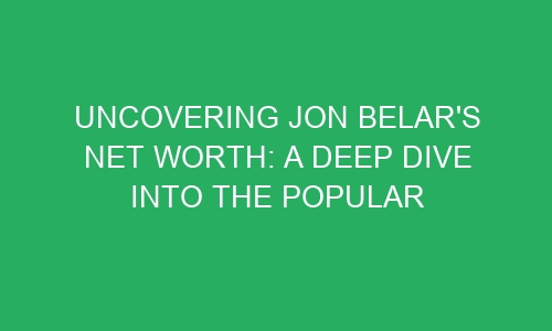 Uncovering Jon Belar’s Net Worth: A Deep Dive into the Popular Entrepreneur’s Wealth