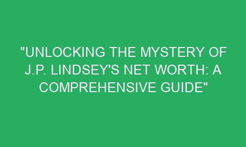 Have you ever heard of J.P. Lindsey? He is a successful businessman and entrepreneur, but one thing that has people scratching their heads is his net worth. Some sources claim he is worth millions, while others say he is barely scraping by. So, what is the truth? In this post, we will be unlocking the mystery of J.P. Lindsey’s net worth. We will dive into his background, his businesses, and his personal life to gain a better understanding of how much he is really worth.