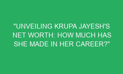 Have you ever wondered how much your favorite celebrity makes in her career? Today, we will unveil the net worth of Krupa Jayesh, a phenomenal actress who has made a name for herself in the entertainment industry. She has acted in several movies and TV shows and has gained a lot of popularity among her fans. In this post, we will take a closer look at her net worth and how she has managed to become successful in her career.