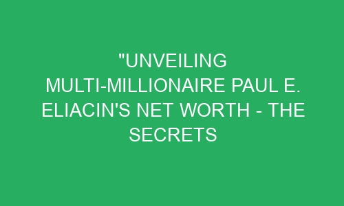 The world is full of success stories, but few move us like that of Paul E. Eliacin — the self-made millionaire whose astounding career has spanned decades. For years, people have been curious about his net worth, wondering how a self-made entrepreneur could amass such a huge fortune. Well, the wait is over, and it’s time to unveil Multi-Millionaire Paul E. Eliacin’s Net Worth. In this blog post, we will take a closer look at the secrets behind his remarkable career, and reveal just how much he’s worth.