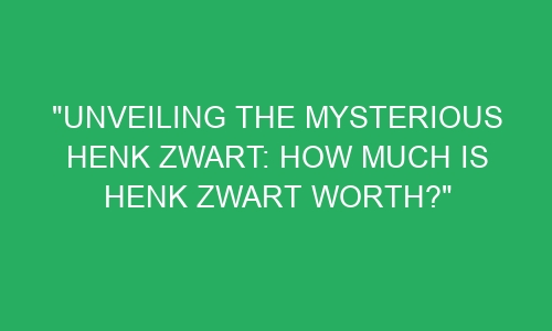 Have you ever heard of Henk Zwart? He is a mysterious figure that is known to have a net worth of millions. However, not much is known about him, and people are curious to uncover the truth about his wealth. This blog post seeks to explore the life of Henk Zwart and unveil the mystery surrounding his net worth.